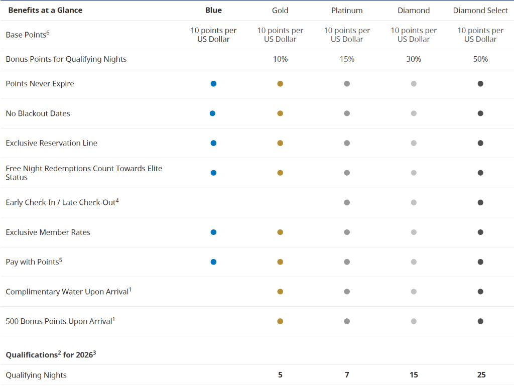 - A Diamond Select member would need to spend $1333** to get a free night.
