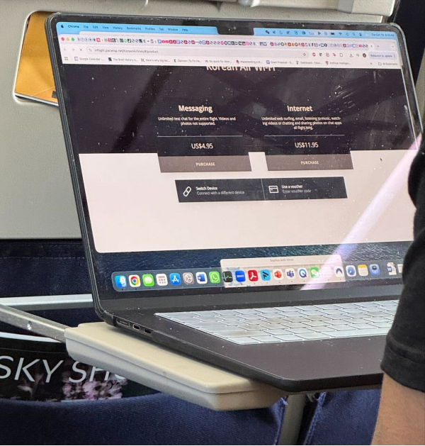 This picture below was taken at 1x. e.g. no zoom used. You can see a person sitting one row in front of me using their Apple laptop.