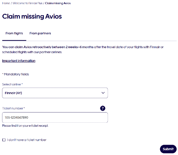 The Name, Finnair Plus number and email address fields are auto-populated since you're already signed in.