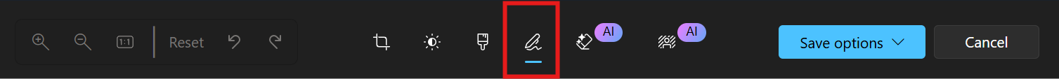In Photos, without Shapes functionality, a user would have to select Edit, then use the Markup functionality shown below, which is basically "hand drawn", resulting in unprofessional looking markup because it's really hard to draw straight lines and perfect right angles.