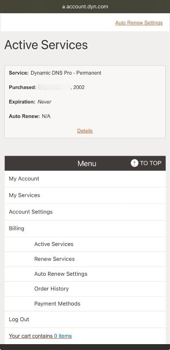 Oracle is honoring Dynamic DNS lifetime subscriptions from Dyn even after the acquisition. That's pretty amazing given Oracle's reputation. I know this because my subscription from 2002 is still available!